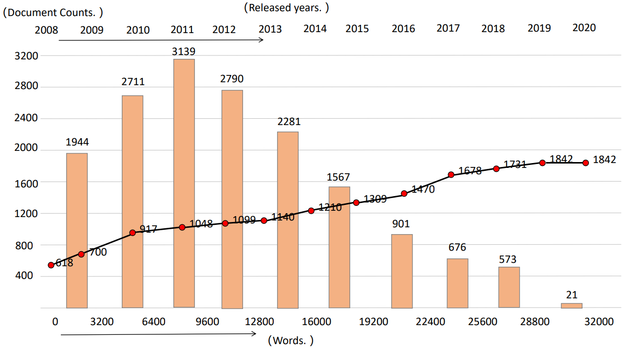 The below Figure describes the statistics of the document lengths and the document released time in different interval.